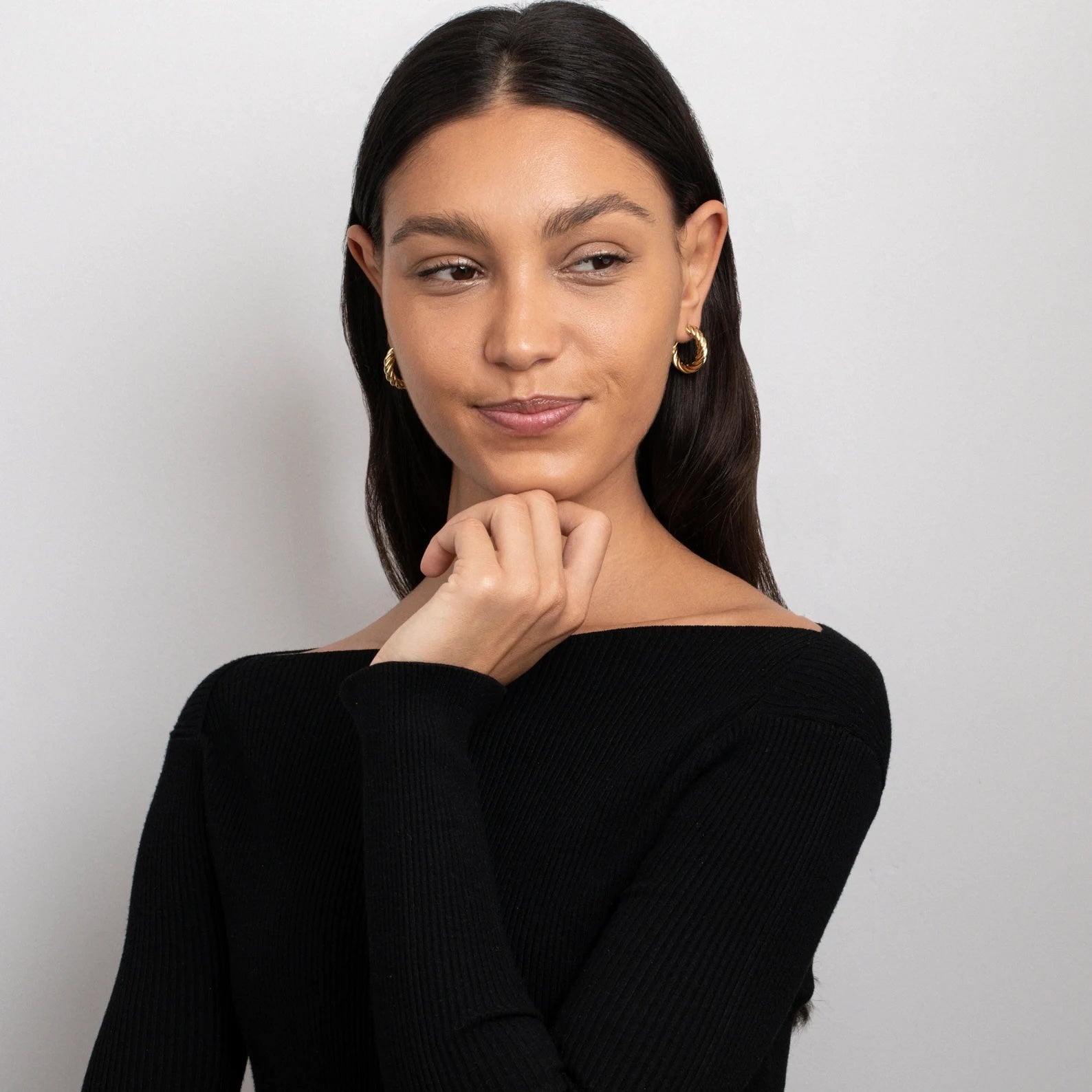 These hoops feature a twisted rope design that blends timeless charm with contemporary flair. Crafted from high-quality stainless steel and finished in 14k gold plating (0.1 micron), they offer a striking look with everyday durability—perfect for elevating your modern jewelry wardrobe.